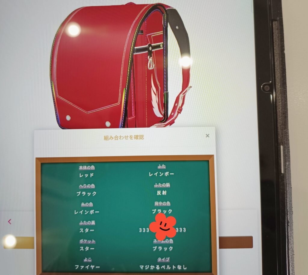 購入するときは、直営店だと「ランドセルを背負った子供の写真プレゼント」ネット購入だと「300円引き」と説明がありました。(2026年3月現在)